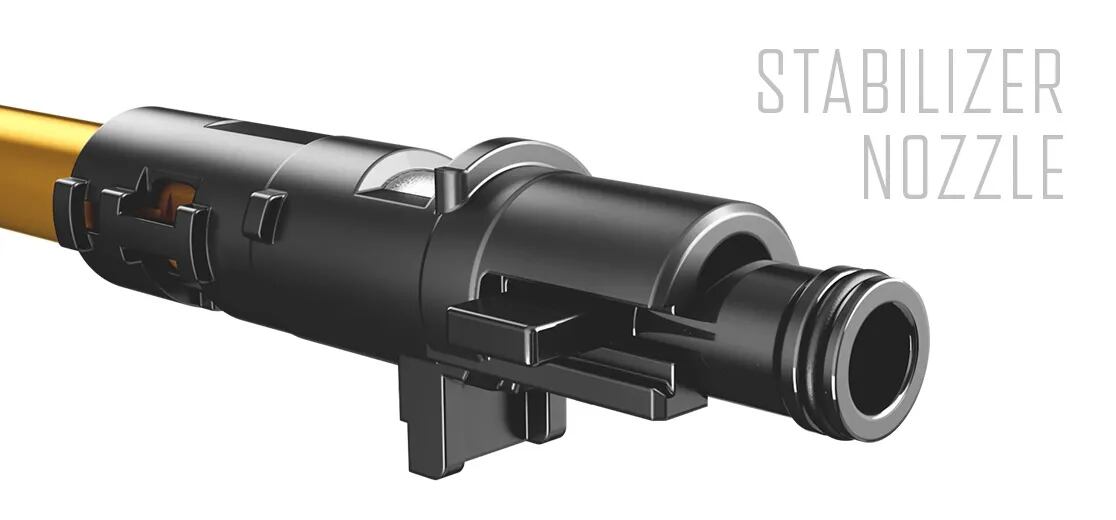 ノズルの位置を安定させて命中精度を向上させる「スタビライザーノズル」、マガジンインナーに上方向のテンションをかけて給弾不良を防止する「インナーエレベーション」、そして、マガジンからチャンバーへBB弾を1発送るたびにマガジン内のシャッターが閉まり、発射後に次弾を給弾するまで銃本体にBB弾が送り込まれない「ワンバイワン ローディングシステム」を新たに開発。