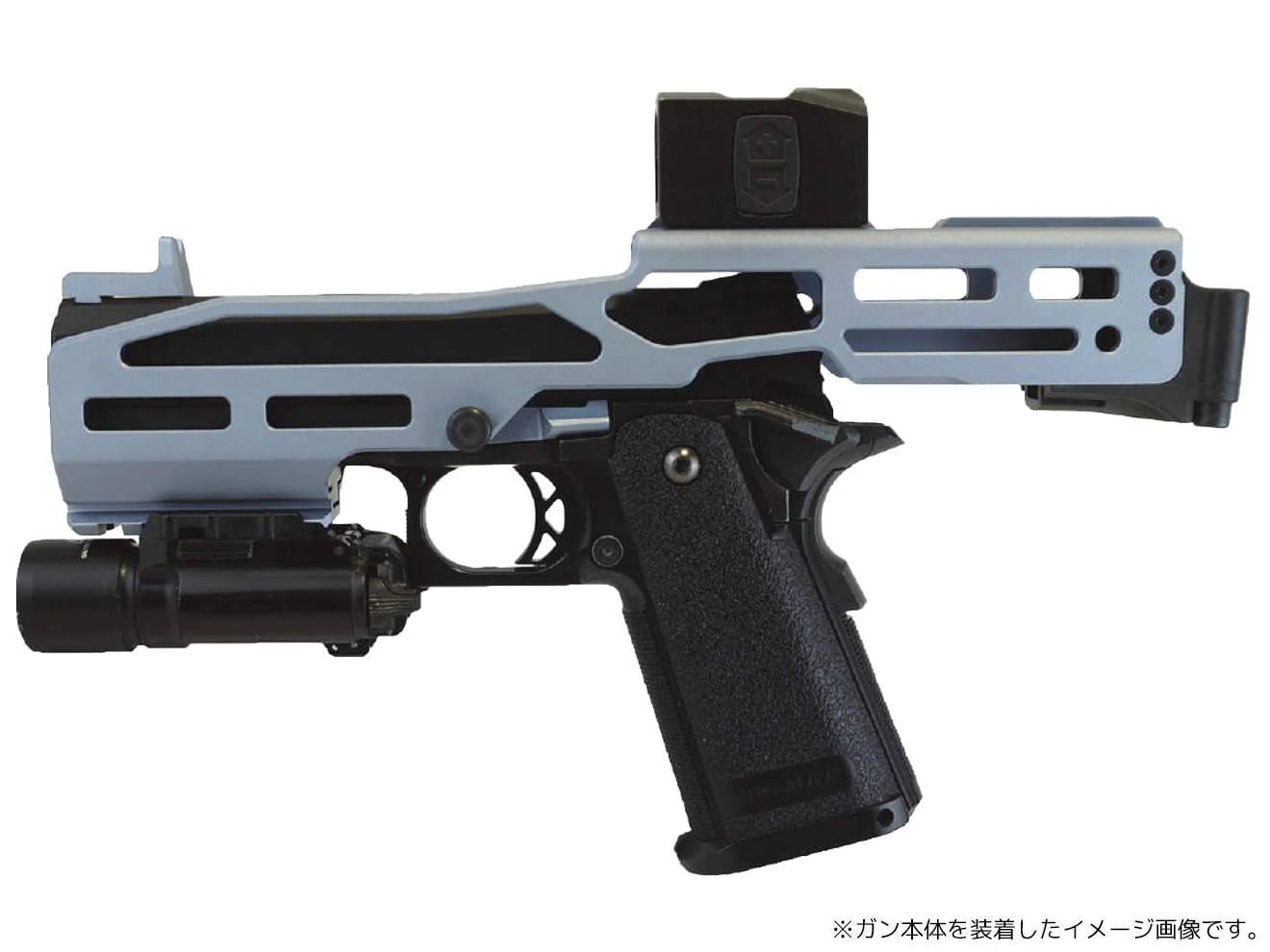 ボディ上面はAIMPOINT ACROに対応したインターフェースを搭載。マウント不要で直接ACROを装着可能です。また付属の20mmレールアダプターを使用すればその他のドットサイトにも対応が可能です。