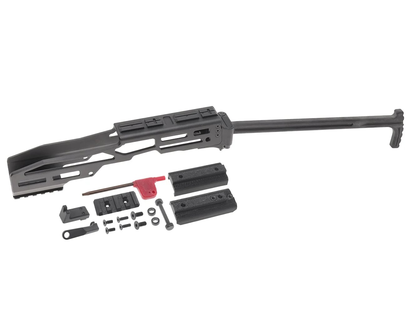 材質はレシーバー部分はA6061T6 CNCで軽量さと剛性、そして精度を兼ね備えた仕上がり。ストック部分はファイバー配合のポリマー樹脂製で必要十分な剛性と軽量化を両立しています。