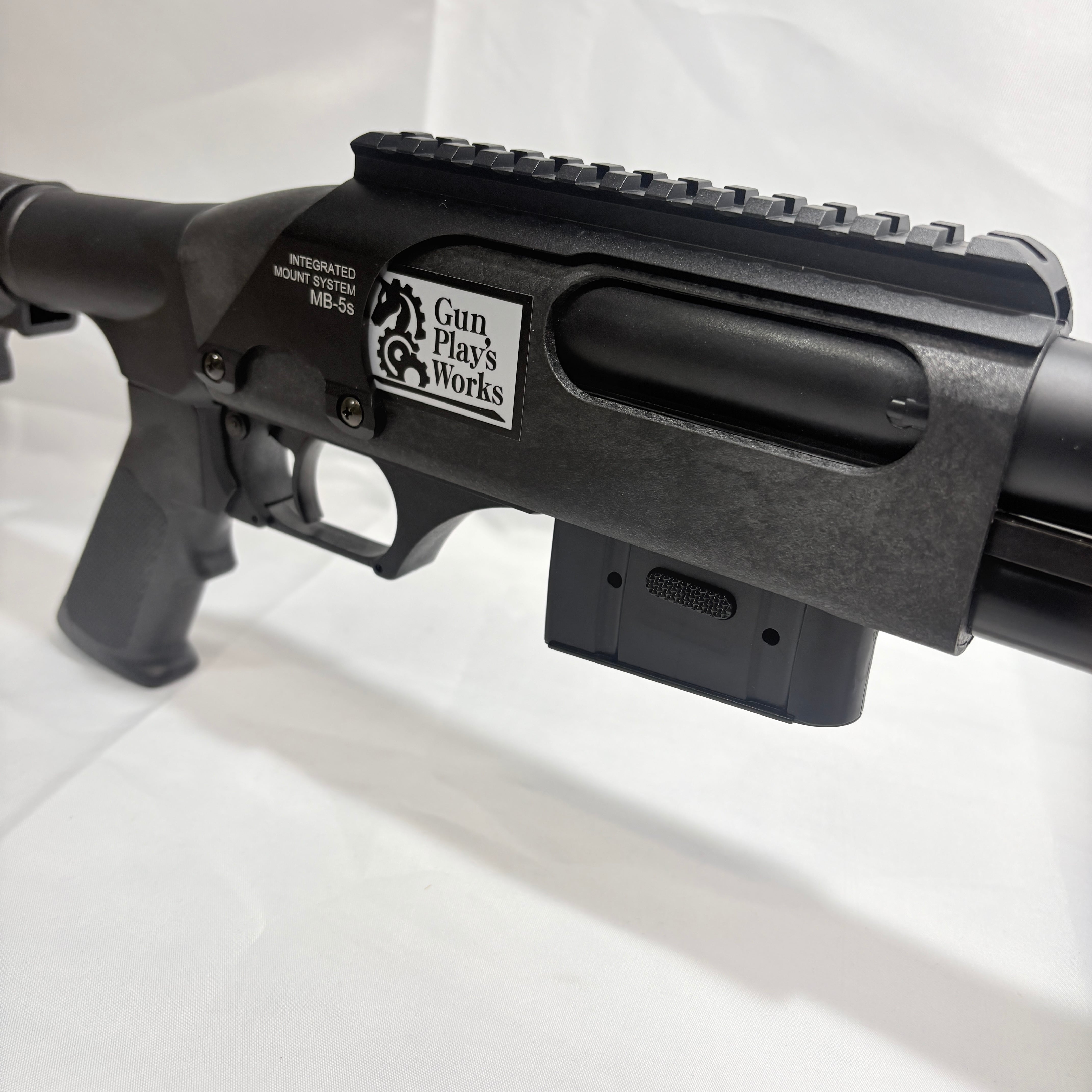 また、レシーバーにはマウントベース (MB-5s) を装備し、光学機器の搭載にも対応。マガジンチューブ前方にはライトなどの装着が可能なミニマウントを備え、アクセサリー追加が出来る構成となっています。