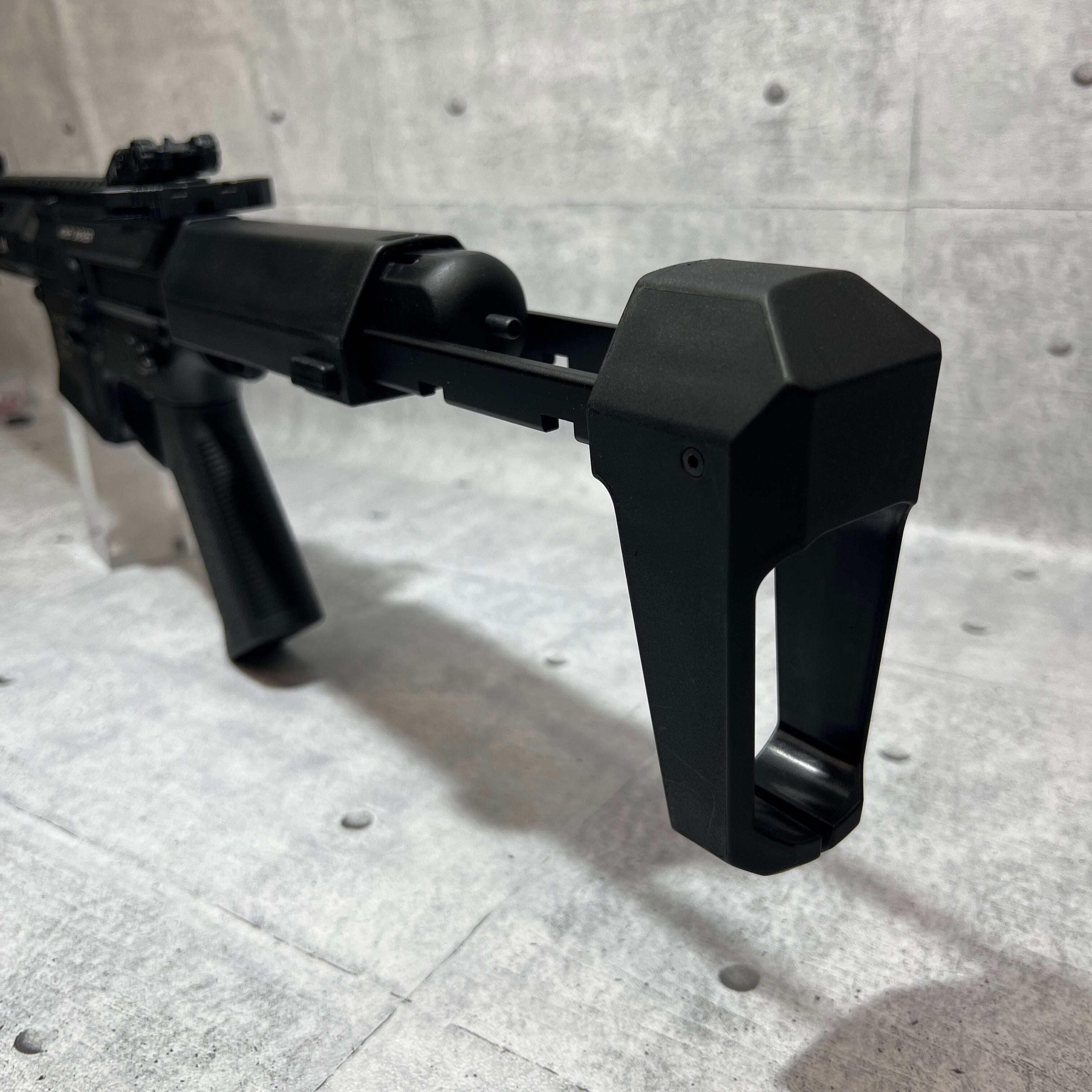 ストックは、PDWタイプコラプシブルストックを標準装備。ストックポジションを3段階で調整ができ、コンパクト性を両立しつつ体型や射撃姿勢に応じた快適なシューティングが可能となります。